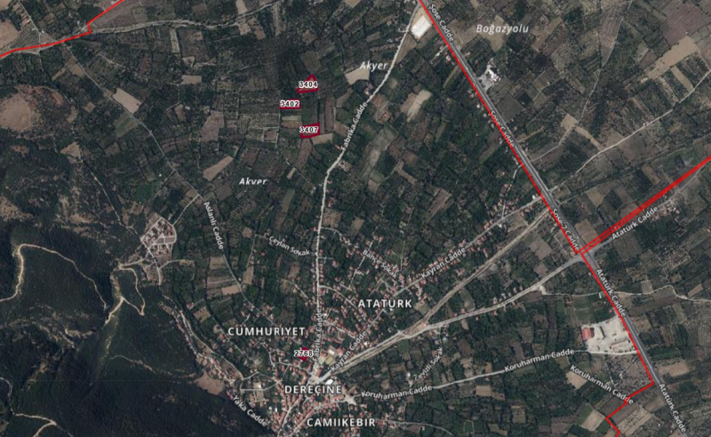 Dereçine’nin köy içinde merkezi konum